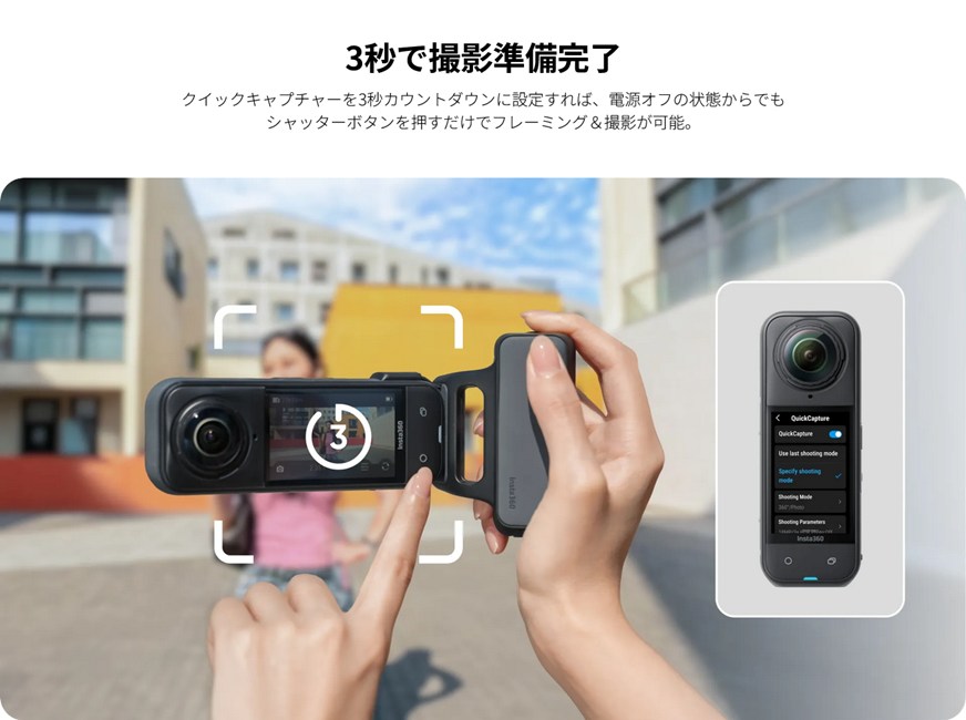 ・360度全景カメラをストリート撮影の強力なツールに。日常の瞬間を手軽に撮影。 ・革新的なデザインで、シネマライクな2.35:1ワイド写真を簡単に撮影可能。 ・クラシックなシャッターボタンで、直感的な撮影体験を実現。 ・内蔵フィルターやウォーターマークが、写真をスタイリッシュに仕上げます。 |