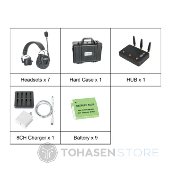 | 2個/ 4個のキットを8個のキットに組み合わせることができますか? | いいえ、4個以上のヘッドセットを組み合わせる場合は、ハブが必要です。ハブを追加すると、1つのマスターヘッドセットと6つのリモートヘッドセットを組み合わせて、合計7つのヘッドセットを作成できます。![]() |