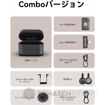 マイク x2 カメラ受信機 x1 Lightning 受信機 x1 USB TYPE-C 受信機 x1 充電ケース x1 ![]() |
