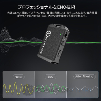 プロフェッショナルENC 環境ノイズキャンセリングLARK MAX は高度な ENC テクノロジーを利用して周囲のノイズを検出して最小限に抑え、大音量の録音環境でもクリアで歪みのないオーディオ品質を維持します。ユーザーフレンドリーで、送信機または受信機から簡単にENCモードのオン/オフを切り替えることができます。 |