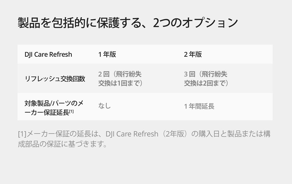 • DJI Care Refresh有効期間中におけるメーカー保証サービスの提供。※3